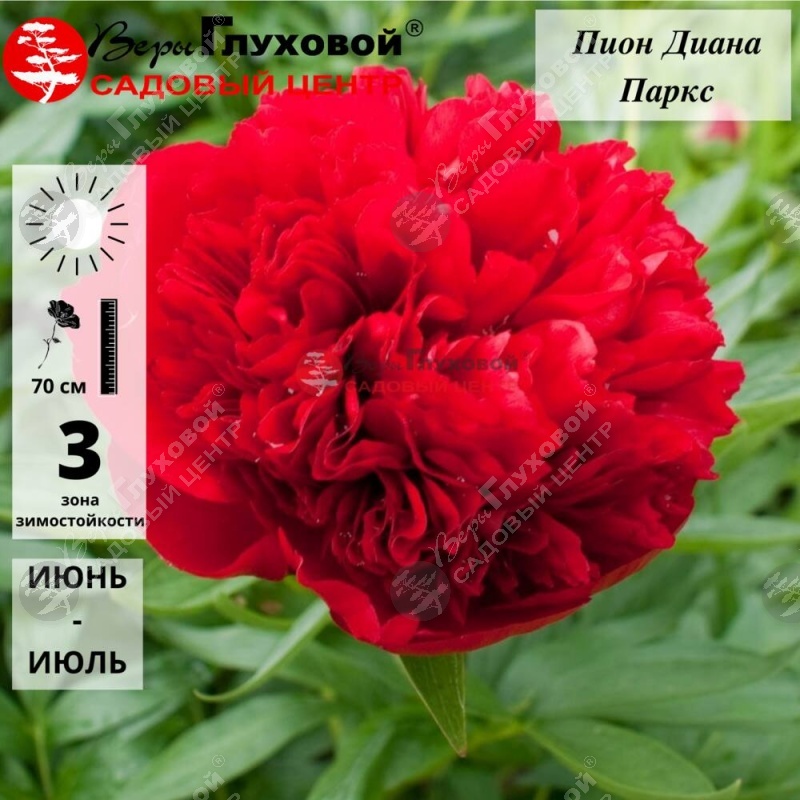 Описание Пион Диана Паркс (PaeoniaDianaParks) - Цветение продолжительное, с июня по июль. Высота: 70 см. Размер цветка: 12 см. Зона зимостойкости: 3 (-40 ° С)
